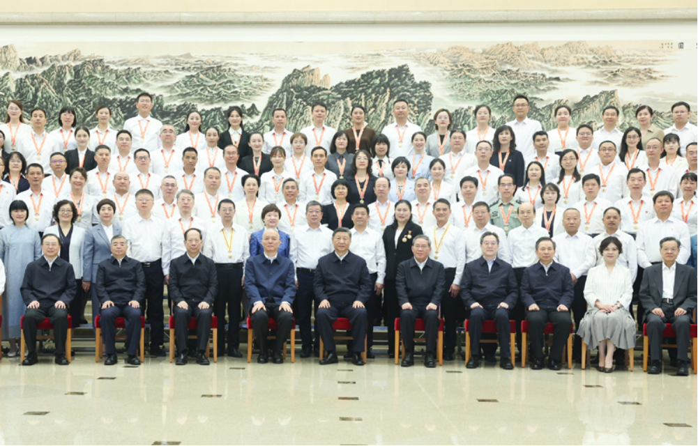 會前,習近平等領導同志親切接見了參加慶祝第四十個教師節暨全國教育系統先進集體和先進個人表彰活動代表,同代表們熱情握手,并同大家合影留念。