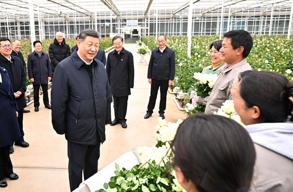 19日下午,習近平來到麗江現代花卉產業園。在展廳,他察看玫瑰、馬蹄蓮鮮切花品種展示,聽取云南花卉產業發展情況介紹。在玫瑰花種植區,他了解智能溫室無土栽培技術,同現場村民、技術人員親切交談。他還來到玫瑰花分級包裝生產線,察看篩選、分級到包裝、發貨的全流程,對鮮切花通過物流及時外銷表示肯定。習近平指出,云南花卉產業前景廣闊,要著眼全產業鏈,從種業端、種植端、市場端不斷深耕細作,讓這一“美麗產業”成為造福群眾的“幸福產業”。