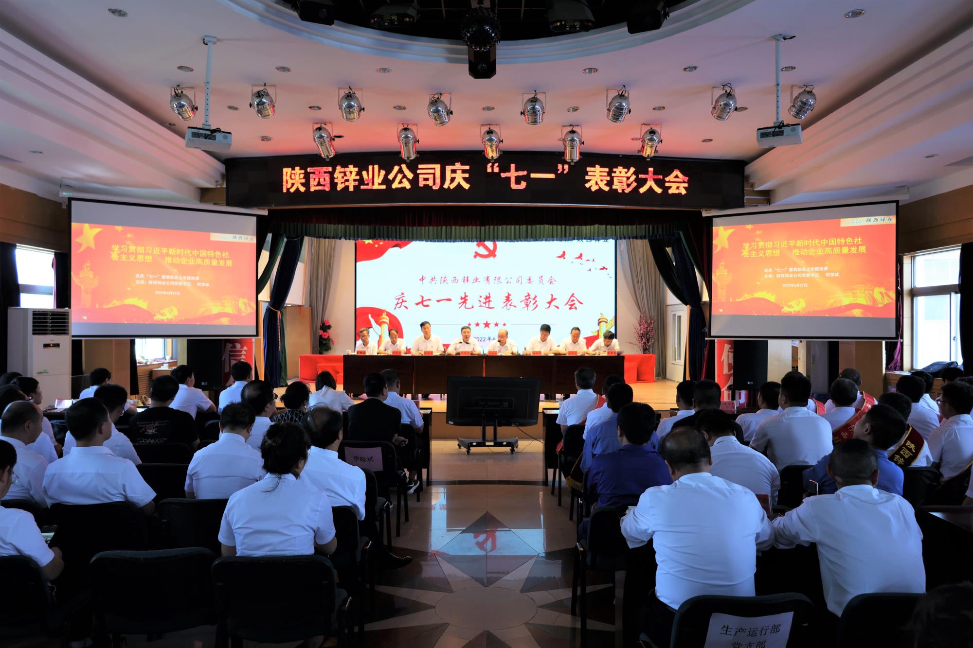 6月27日下午,陜西鋅業公司召開慶“七一”先進表彰大會。表彰過去一年涌現出來的先進基層黨支部、優秀共產黨員和優秀黨務工作者,進一步動員廣大黨員和全體員工鼓起干勁,學習先進,趕超先進。公司領導班子成員、總經理助理、全體黨員等參加會議,會議由黨委副書記、總經理崔旭東主持。