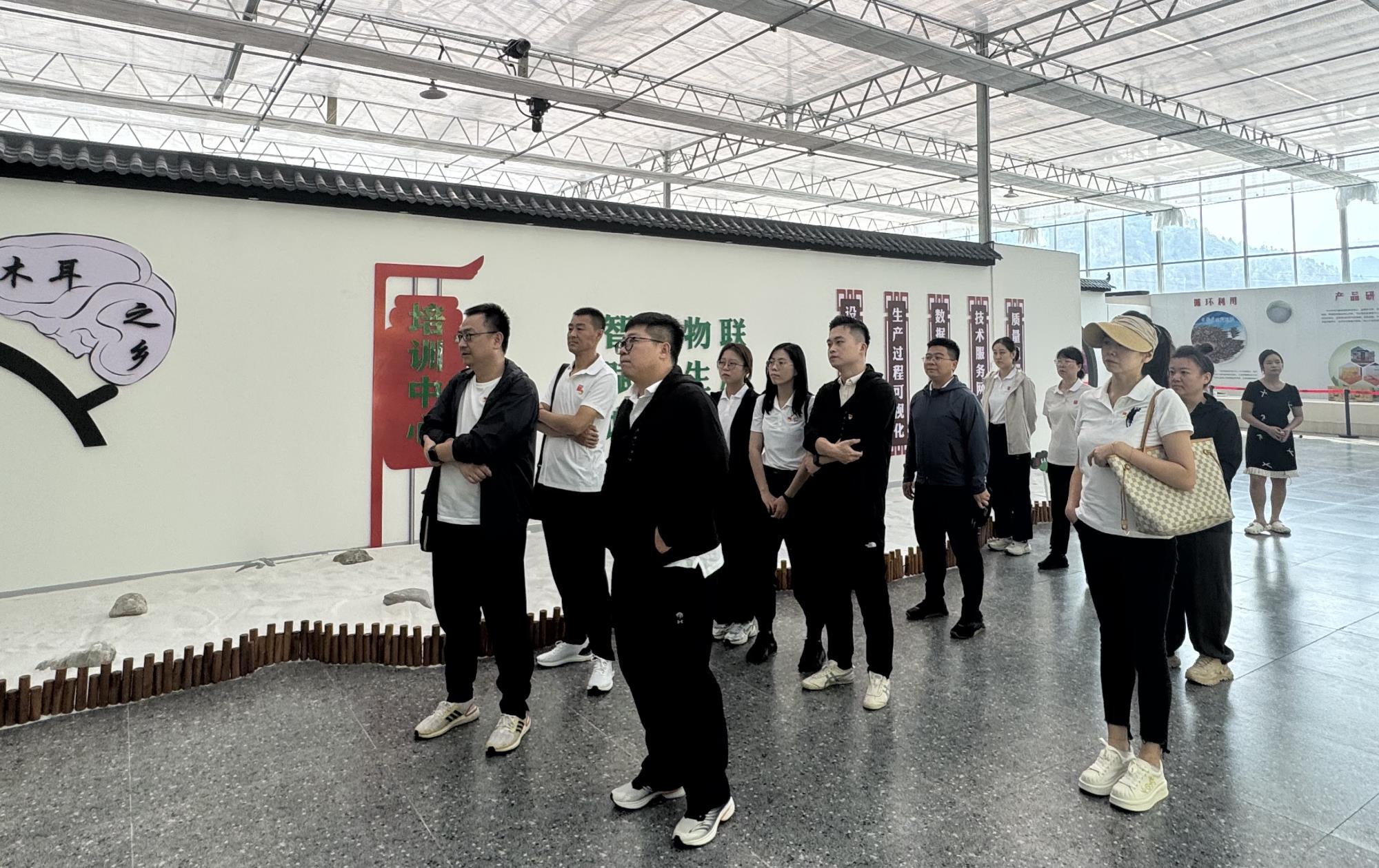 在金米村,轉正的黨員和預備黨員面向黨旗宣誓,老黨員們重溫了入黨誓詞。隨后大家沿著習近平總書記的考察路,詳細了解了習近平總書記在金米村的考察情況,實地參觀了村培訓中心、智能聯動木耳大棚,聆聽了《總書記點贊人心暖,小木耳托起致富夢》專題教學,現場探尋總書記提出“小木耳、大產業”蘊含的脫貧致富之道。