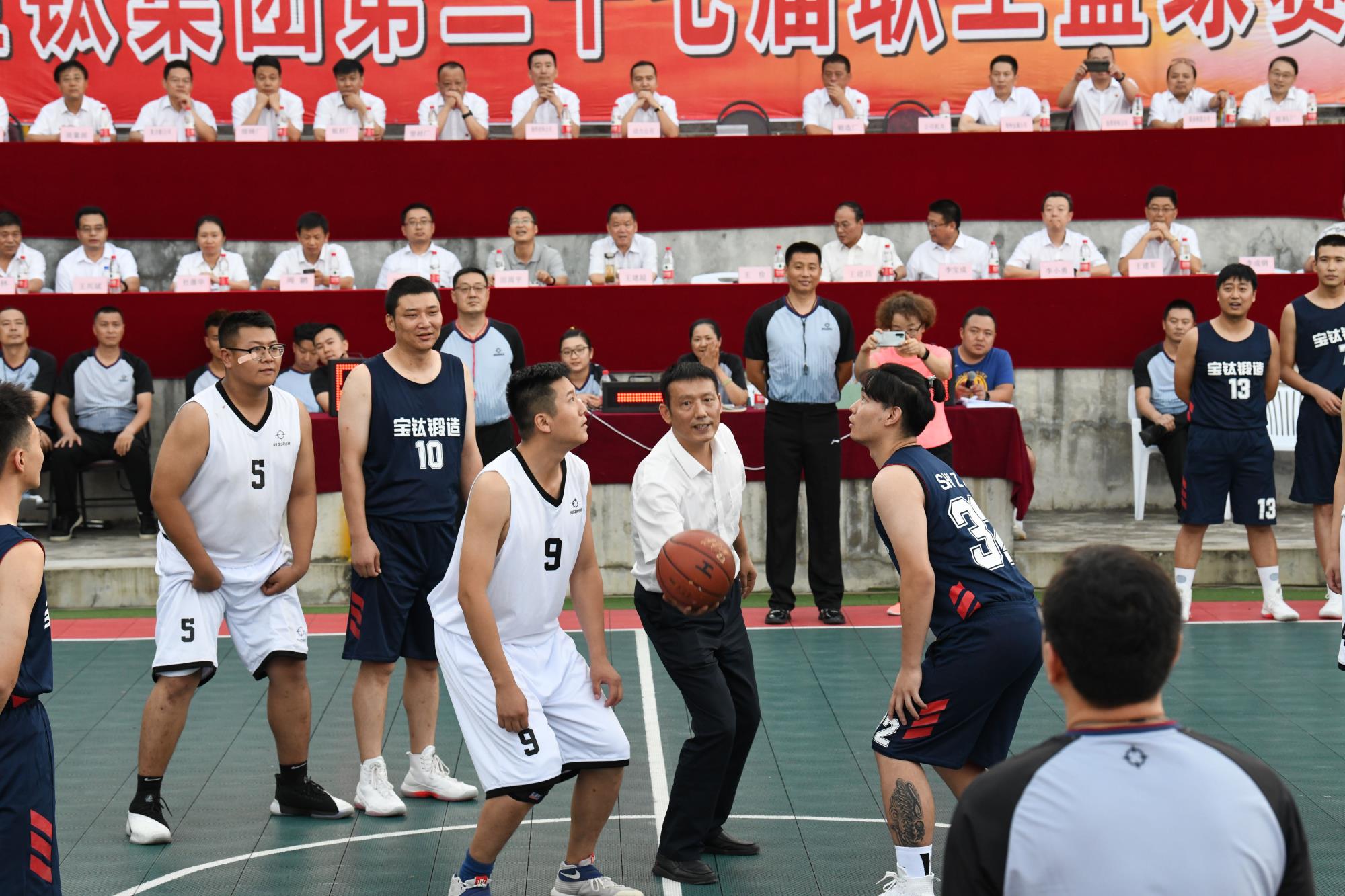 8月13日晚7時(shí),由寶鈦集團(tuán)工會(huì)舉辦的第二十七屆職工籃球賽在老區(qū)燈光籃球場(chǎng)拉開(kāi)帷幕,公司權(quán)屬15家單位15支代表隊(duì)180多名運(yùn)動(dòng)員將在這里進(jìn)行為期12天的比賽。公司黨委副書(shū)記、工會(huì)主席王建超,副總經(jīng)理、寶雞籃球協(xié)會(huì)副主席王儉,工會(huì)副主席田周平及本屆組委會(huì)成員、公司工會(huì)各部門(mén)負(fù)責(zé)人、寶鈦籃球協(xié)會(huì)成員及各參賽單位領(lǐng)隊(duì)參加了開(kāi)幕式。