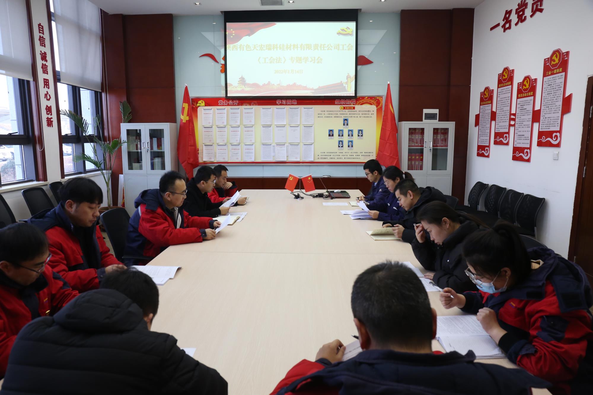 1月14日,天瑞硅材料工會(huì)在一樓會(huì)議室召開(kāi)工委會(huì)擴(kuò)大會(huì)議,深入學(xué)習(xí)新修改的《中華人民共和國(guó)工會(huì)法》。會(huì)議由公司工會(huì)主席胡磊主持,工委會(huì)委員、女職工委員、經(jīng)審委員、職工代表參加。