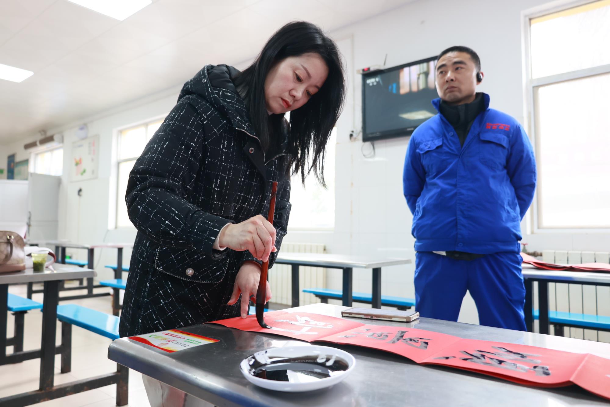 在活動現場,書畫家們凝神提筆、揮毫潑墨,一張張寓意美好祝愿的祝福躍然紙上,一幅幅散發著清新墨香的春聯各顯神韻。書畫家們將寫著吉祥祝福的春聯送到職工手中,拿著一幅幅喜慶的春聯,職工們喜笑顏開,紛紛表示感謝。廣大干部職工紛紛表示,這份來自書法家們親手書寫的春聯更有意義,不僅只是新春祝福,更是一種中國文化的傳承和自信。