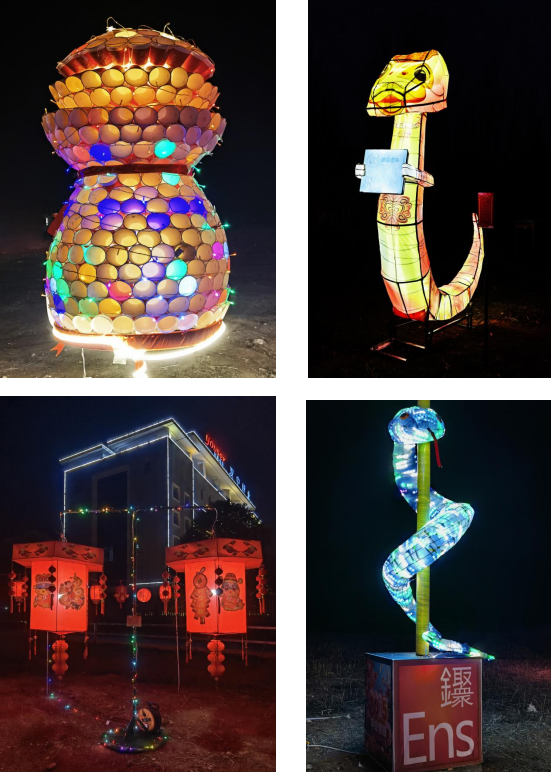 絢麗多彩的花燈,恰似我們企業發展歷程的生動縮影。每一盞燈都飽含著匠心與熱情,每一束光都照亮著前行的方向。它們不僅是藝術的呈現,更是我們“凝心聚力、勇攀高峰”的象征。大型花燈飽含了漢鋅人無限創意和匠心獨運,既有企業歷史的傳承,也有燈光電聲色美的完美融合。硫酸車間沸騰爐造型的花燈,熊熊爐火為電鋅系統生產了合格原料;熔鑄車間完整的生產線花燈,演繹著銀光閃閃的鋅錠鑄造過程;公司工會“金蛇送福”花燈為byxy牌鋅錠代言;電鋅三車間銀光四射的“帆船”把鋅錠遠銷世界;小型兔子燈、蓮花燈、宮燈……展示了職工們的心聰手巧和對新年的美好祝愿。引得大家紛紛駐足拍照留念。