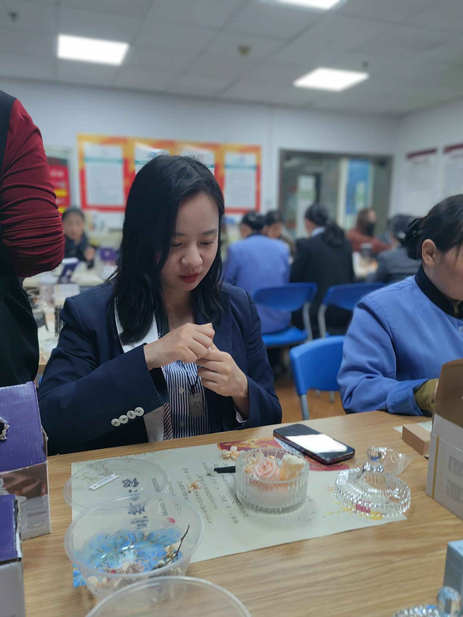 活動現場精心布置了香薰材料,氛圍溫馨。專業的香薰老師講解了香薰文化及DIY制作的技巧,并指導女職工們親手調配精油、搭配干花,創作專屬的香薰蠟燭。