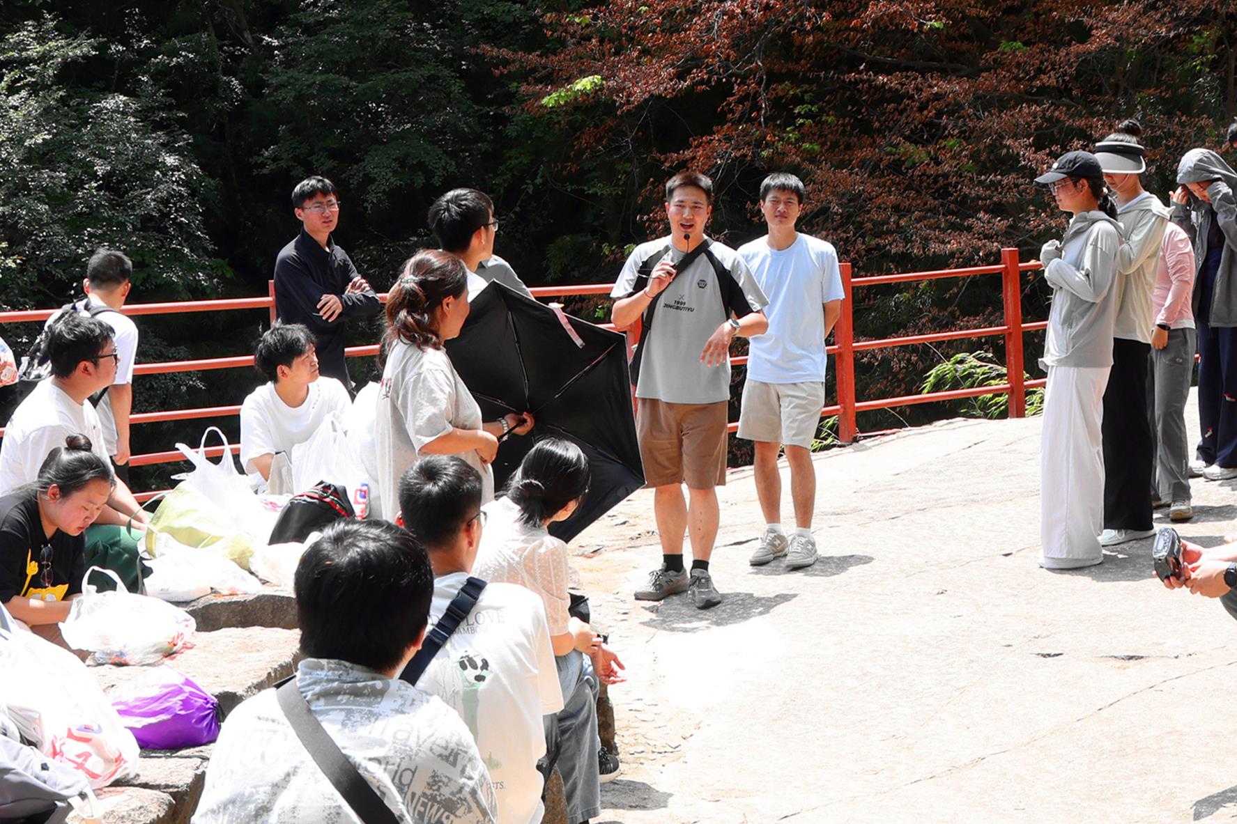 抵達(dá)目的地后,全員進(jìn)行了熱身,為登山做好充分準(zhǔn)備。隨后自由組合成4個小組,推選組長并統(tǒng)籌協(xié)調(diào)。徒步途中,一幕幕暖心場景接連上演:體力充沛的青年主動接過同伴的背包,陡峭路段上隊員們手手相扣形成穩(wěn)固“人鏈”,有人步伐放緩時,身旁立刻響起“加油,我們一起走”的鼓勁聲,更有不少人沿途彎腰撿拾垃圾,以行動踐行“無痕戶外”理念……這些雙向奔赴的扶持,讓攀登之路充滿溫度,更生動詮釋了“共攀高峰”絕非單打獨(dú)斗,而是并肩前行的深層含義。最終,在全員互助下,所有成員成功登頂,無人掉隊。山頂?shù)膱F(tuán)建游戲?qū)夥胀葡蚋叱保骸敖叹氄f”游戲中,大家全神貫注捕捉指令,在動靜之間錘煉反應(yīng)與專注;“運(yùn)動大腦”環(huán)節(jié)里,拋接水瓶的互動讓團(tuán)隊配合愈發(fā)流暢,笑聲與喝彩聲在山間回蕩。