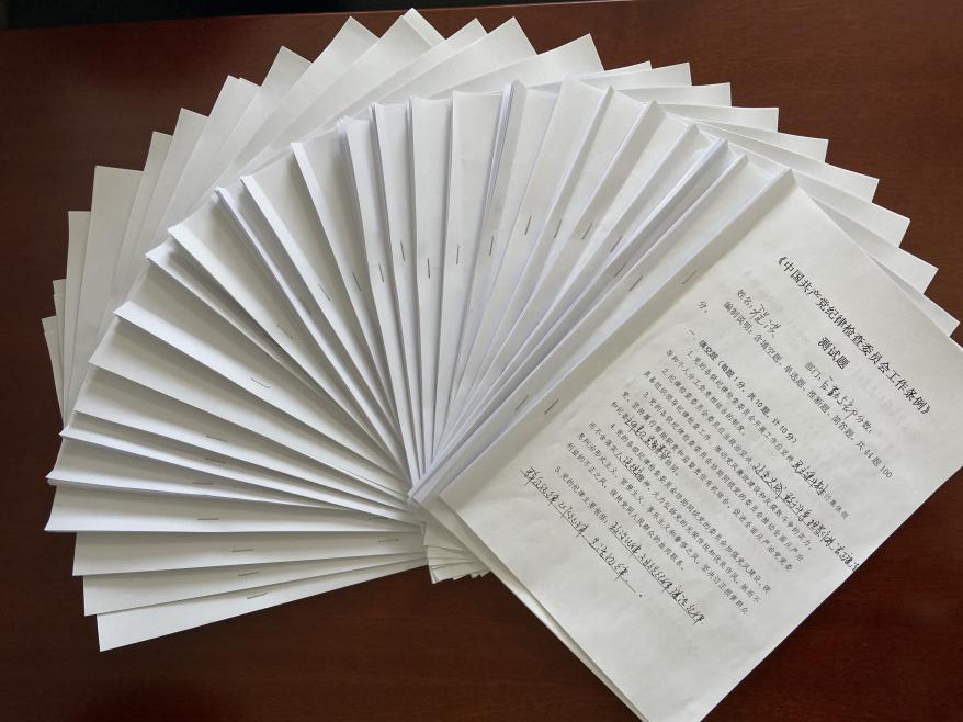 為檢驗學習成果,2022年6月15日,公司紀委量身定制了一場測試,公司各基層紀檢干部共計24人參加了測試。本次測試采取了統一命題、集中組織、閉卷答題的方式,題型包括填空題、單選題、簡答題等共44題,答題時長1小時。通過測試,有針對性的進行查漏補缺,夯實紀檢干部的理論基礎,進一步強化應用水平,提升業務能力。