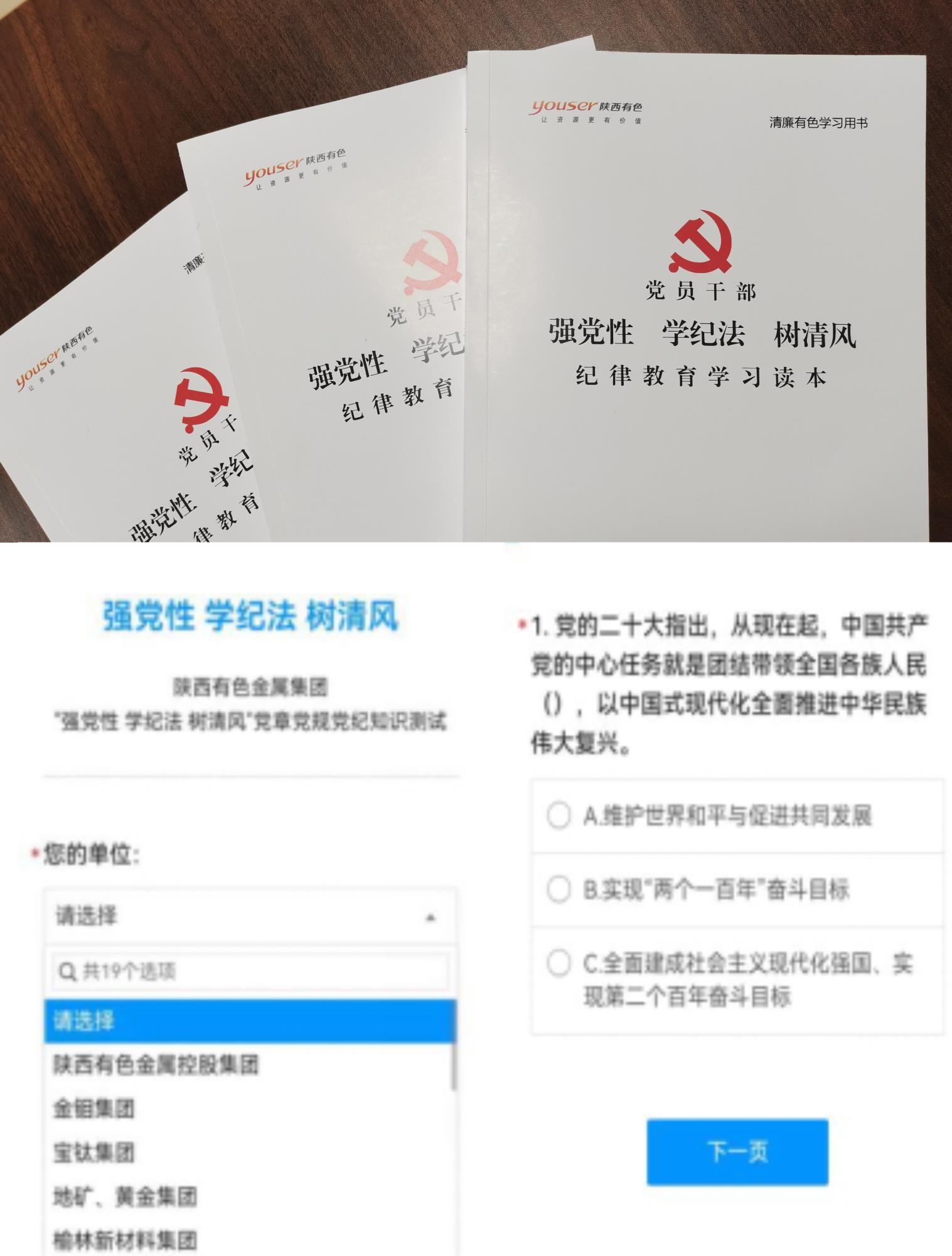 學(xué)紀(jì)守紀(jì)悟思想。利用“廉潔有色”微信公眾平臺(tái)發(fā)布省紀(jì)委監(jiān)委要求學(xué)習(xí)的《黨員干部紀(jì)律教育學(xué)習(xí)讀本》《紀(jì)檢監(jiān)察干部說紀(jì)》系列視頻課程和《關(guān)于在“陜西紀(jì)檢監(jiān)察”微信公眾號參與全省紀(jì)律教育學(xué)習(xí)宣傳月黨規(guī)黨紀(jì)知識(shí)測試活動(dòng)的通知》,積極動(dòng)員黨員、干部參與知識(shí)測試。各級黨組織以支部為單位組織開展學(xué)紀(jì)守紀(jì)交流活動(dòng),黨員干部紛紛撰寫紀(jì)律教育學(xué)習(xí)心得體會(huì)文章。權(quán)屬企業(yè)金鉬集團(tuán)精心制作了四期“紀(jì)法小課堂”欄目,利用微信公眾號向黨員、干部、職工推送,漢中鋅業(yè)、陜西鋅業(yè)黨委書記講授紀(jì)律教育專題黨課,促使黨員、干部、職工對黨紀(jì)條規(guī)全面理解、準(zhǔn)確領(lǐng)會(huì)、把握真諦、入腦入心。活動(dòng)期間,全系統(tǒng)各級黨組織共組織“悟思想”學(xué)紀(jì)守紀(jì)交流活動(dòng)180次,9989人完成全省紀(jì)律教育學(xué)習(xí)宣傳月活動(dòng)黨規(guī)黨紀(jì)知識(shí)測試。