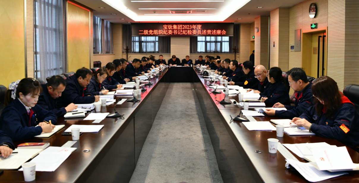 2月5日上午,寶鈦集團紀委組織召開2023年度二級黨組織紀委書記紀檢委員述責述廉會,公司紀委委員,二級黨組織紀委書記、紀檢委員,紀檢部門干部共42人參加會議。寶鈦集團黨委委員、紀委書記賀治民出席會議,紀委副書記劉軍發主持會議。