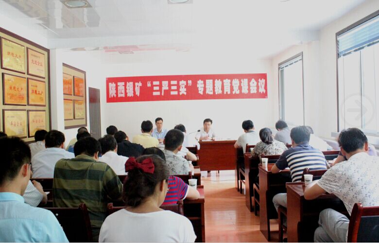 6月9日,陜西銀礦召開了“三嚴三實”專題教育黨課會議。黨委書記孫會昌為黨員干部作了題為《踐行“三嚴三實”,以良好作風推動企業科學發展》的專題黨課,對活動進行動員部署,會議由礦長陳在勞主持,銀礦本部黨員干部共40余人參加了會議。 孫會昌深刻闡述了“三嚴三實”的科學內涵和重大意義,并對“三嚴三實”實踐要求和努力方向進行了深入講解。他指出,這次專題教育是黨的群眾路線教育實踐活動的延展深化,是加強黨的思想政治建設和作風建設的重要舉措,更是解決問題,推進當前各項工作的迫切需要。他強調,這次專題教育活動的主題是學習“三嚴三實”,踐行“三嚴三實”。要扎實做好專題黨課、專題學習研討、專題民主生活會和組織生活會、整改落實和立規執紀四個方面的規定動作,以上帶下,做到專題教育與日常工作兩手抓,兩促進。 陳在勞分析了銀礦目前尾礦庫建設、小礦體探礦工程、對外開發項目等主要工作的進展情況,并就貫徹好這次黨課會議精神強調,結合實際,精心組織開展專題教育,以作風建設推動礦當前各項工作。
